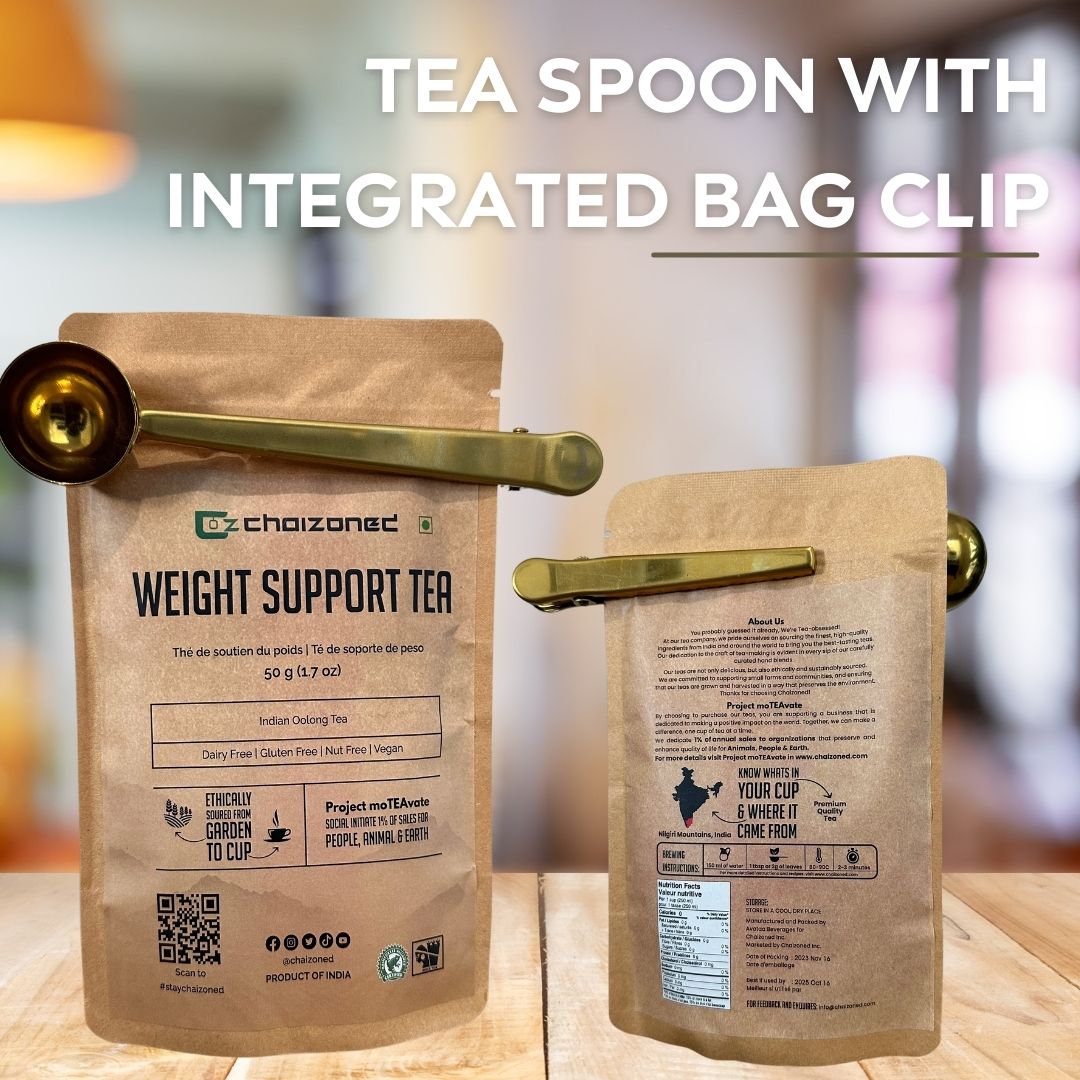 Elevate your tea and coffee experience with CHAIZONED Tea & Coffee Scoop pack in striking gold & silver colors with a tea bag clip. Crafted from premium stainless steel, each scoop ensures precise measuring for a perfect brew every time. Versatile and stylish, these clips come in sleek design to suit any kitchen aesthetic. Their compact design saves space while their sealed clamp preserves freshness.