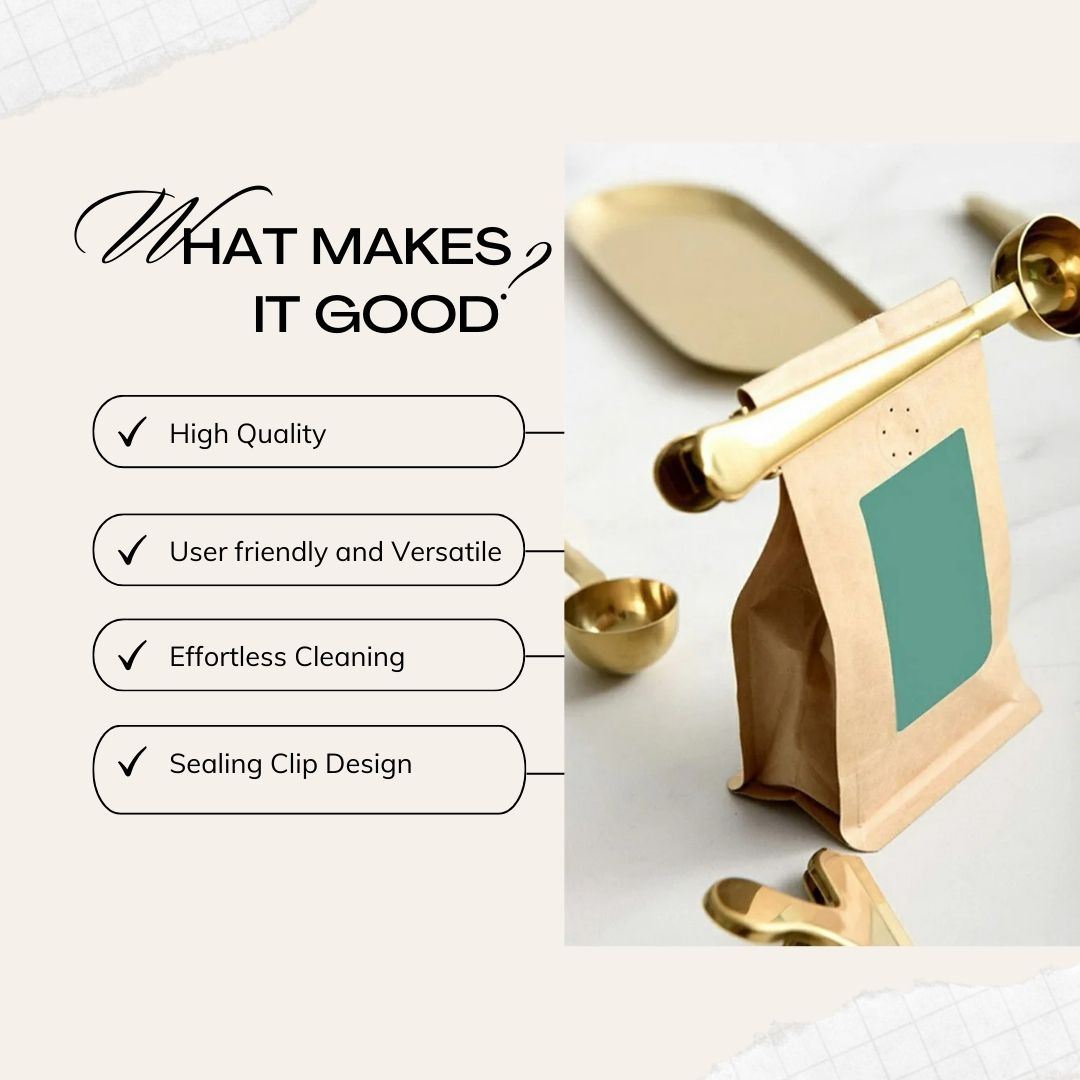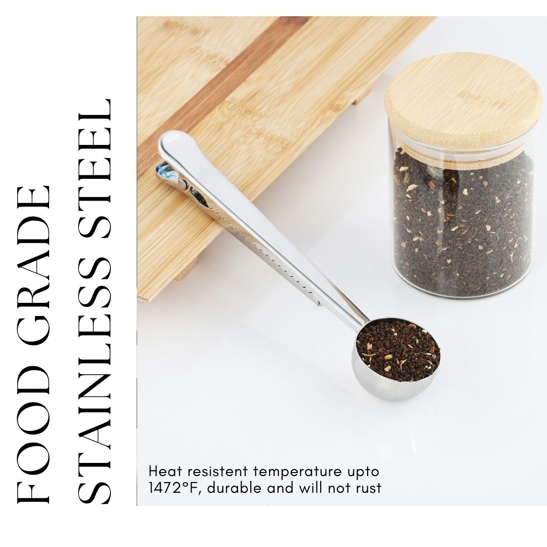 STAINLESS-STEEL DESIGN: Crafted from high-quality stainless steel, our 2-in-1 tea scoop and bag clip ensure durability with no sharp edges. Its dual function guarantees consistent coffee measures every time.