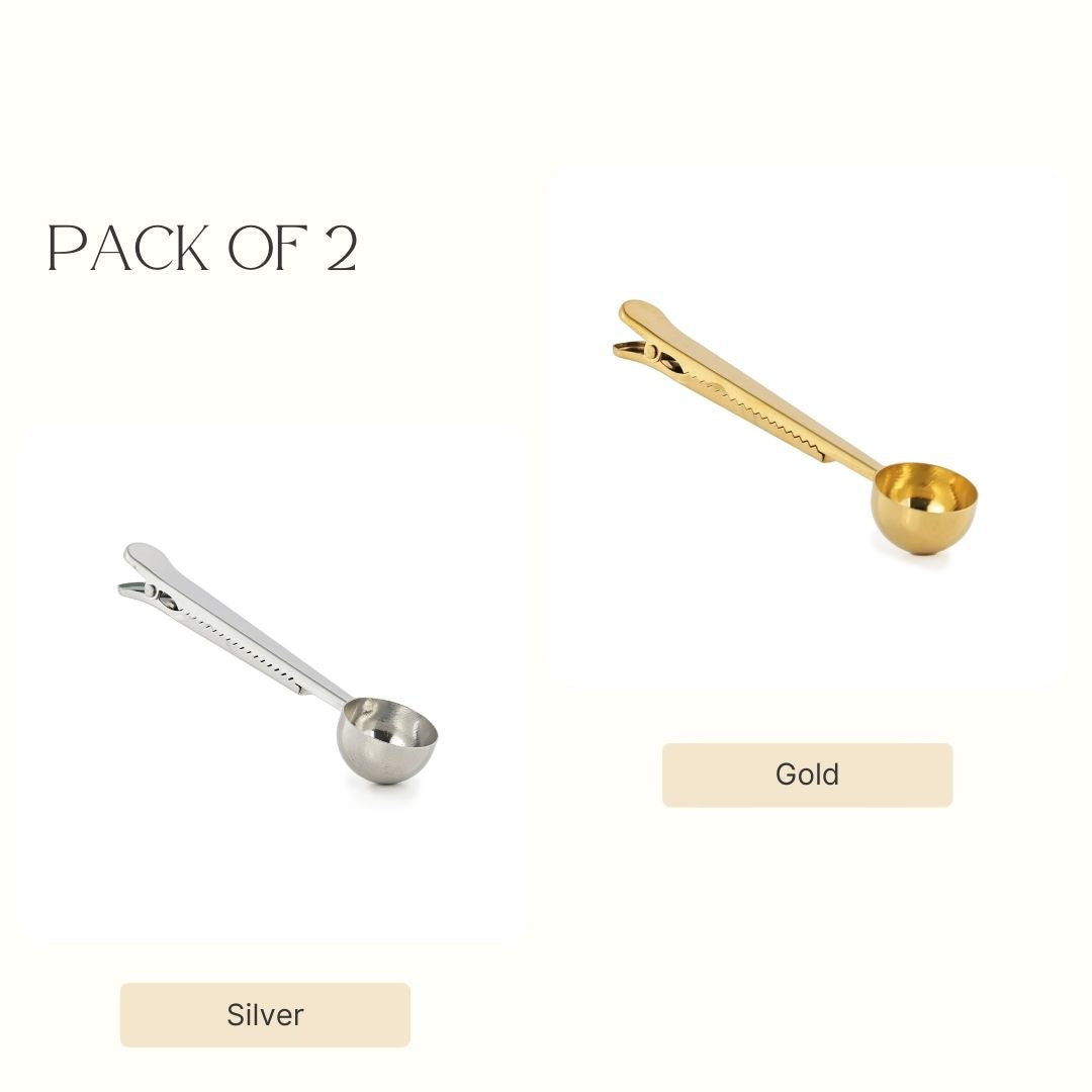 2PK Tea Scoops with Bag Clip - Gold & Silver